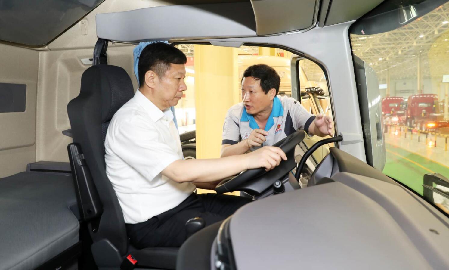 在總裝車間,王擁軍登上了剛剛下線的大運V9重卡,在先進、寬敞、舒適的駕駛室體驗了駕乘感受。駕乘結束后,王擁軍同志對大運集團自主研發的高端重卡V9牽引車表示了高度贊賞,鼓勵大運集團堅持自主研發、自主創新,把大運重卡打造成國內頂尖、世界一流的汽車品牌。